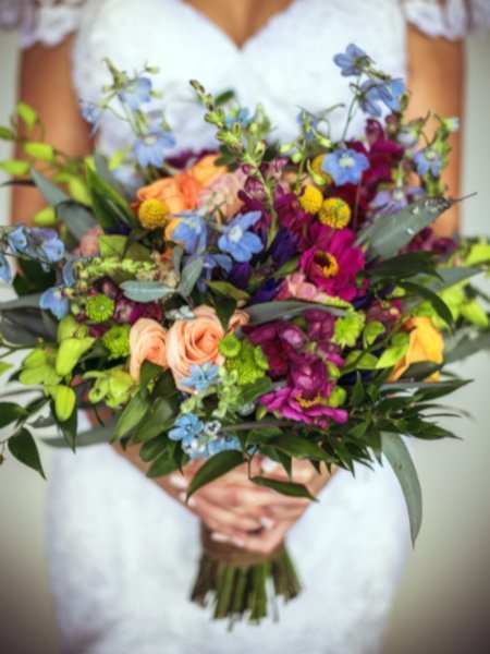 What you choose to wear at your wedding will help determine the colour of flowers and shape of bouquet that will suit it best. For example, if your dress is quite intricate and has a lot of detail, it would be a shame to hide it behind a giant cascading bouquet. Likewise, you also want to consider what colour your bridesmaids and/or groomsmen will be wearing. We recommend you bring photos of what you and your wedding party will be wearing with you to your consultation, so that we can take this into consideration when designing your bouquet.